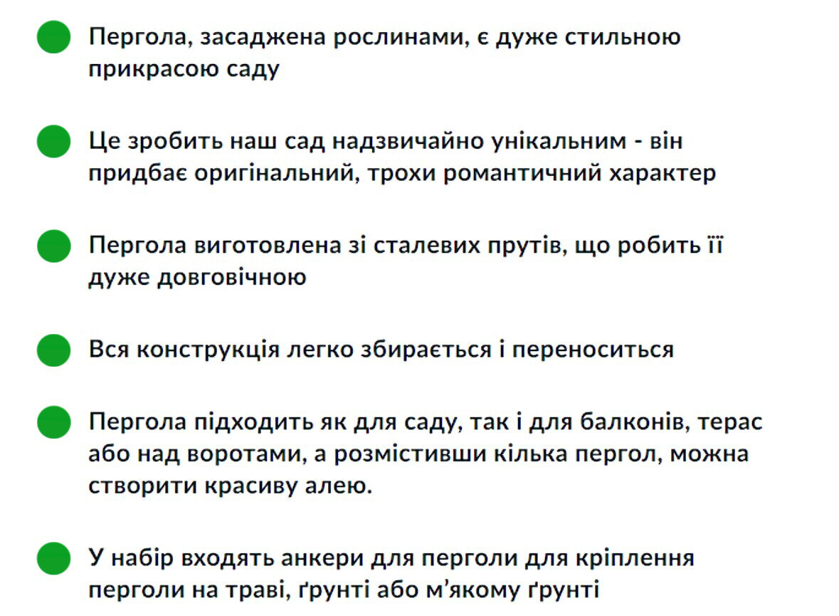 Легка, проста в установці пергола. Я купив її для гліцинії - вона гарно по ній пускає!